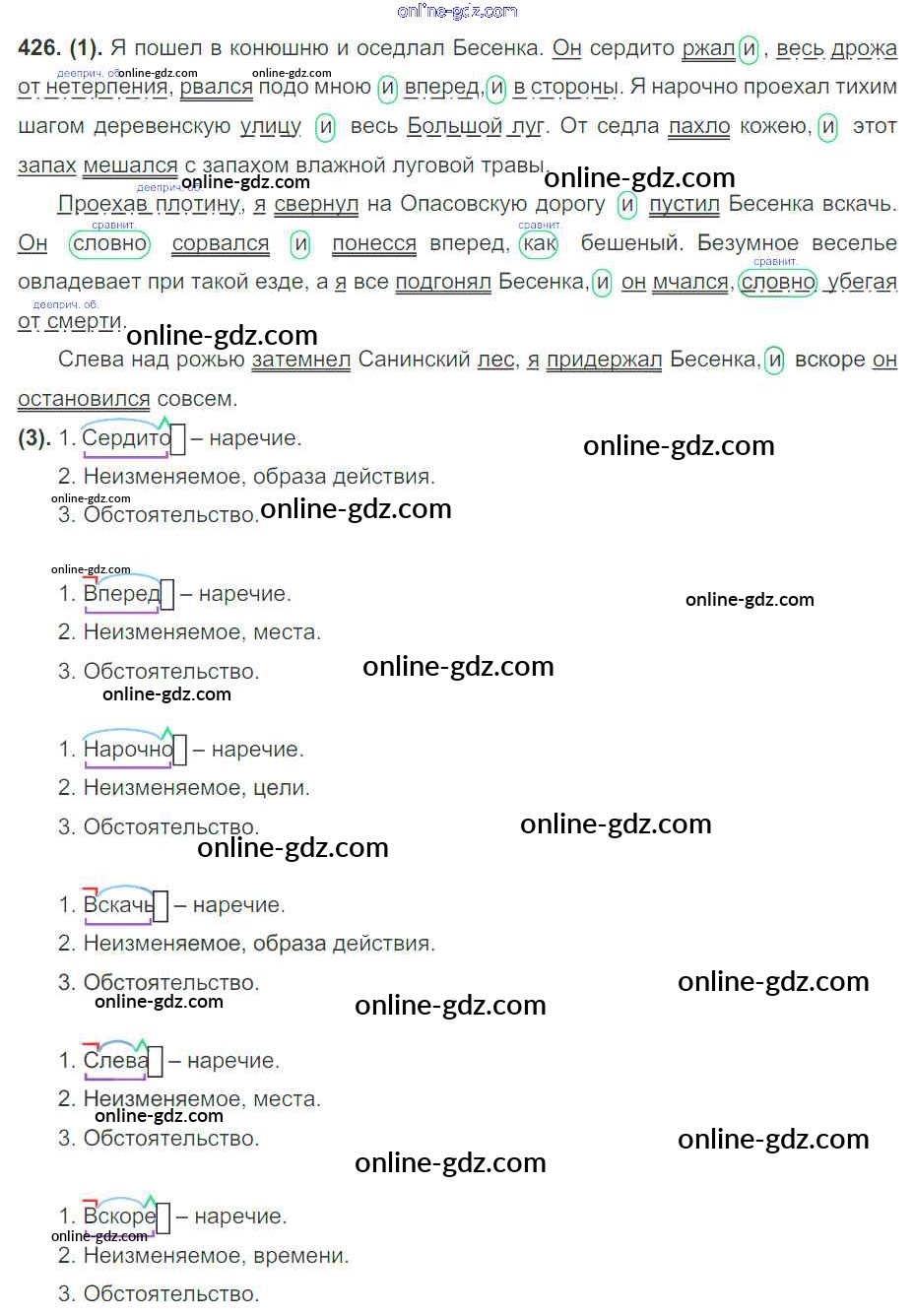 Готовые домашние задания по Русскому языку за 7 класс Учебник Разумовская, Львова УМК 2014 - Упражнения 426
