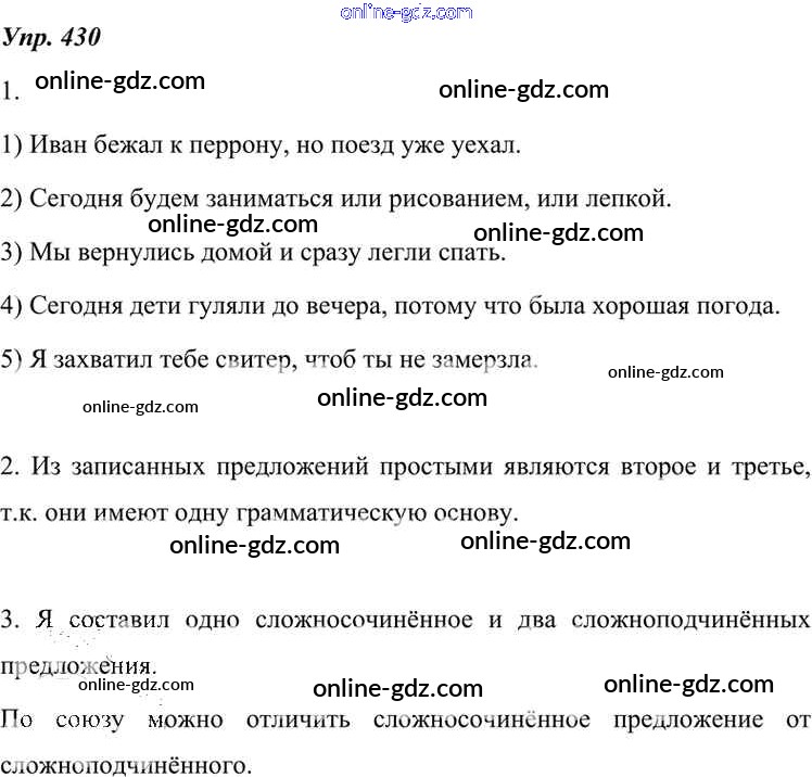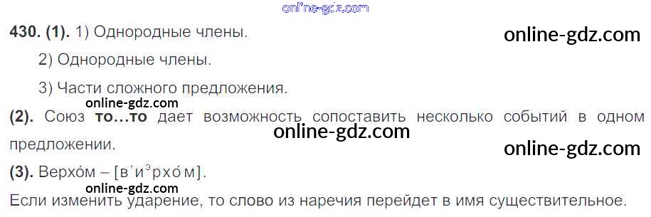 Готовые домашние задания по Русскому языку за 7 класс Учебник Разумовская, Львова УМК 2014 - Упражнения 430