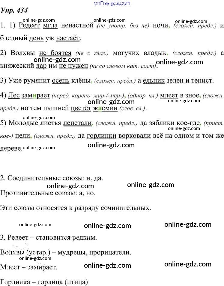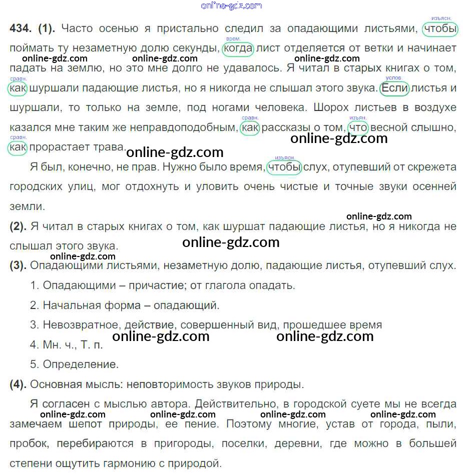 Готовые домашние задания по Русскому языку за 7 класс Учебник Разумовская, Львова УМК 2014 - Упражнения 434