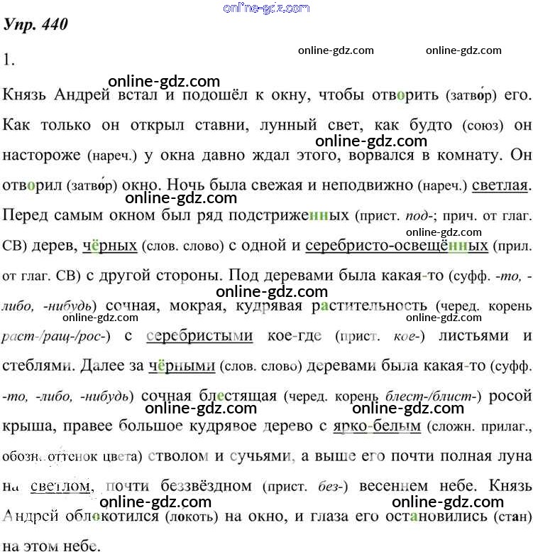 Готовые домашние задания по Русскому языку за 7 класс Учебник Разумовская, Львова УМК 2014 - Упражнения 440