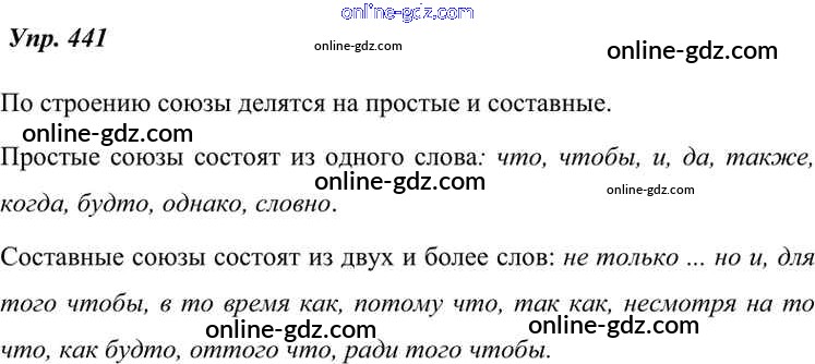 Готовые домашние задания по Русскому языку за 7 класс Учебник Разумовская, Львова УМК 2014 - Упражнения 441