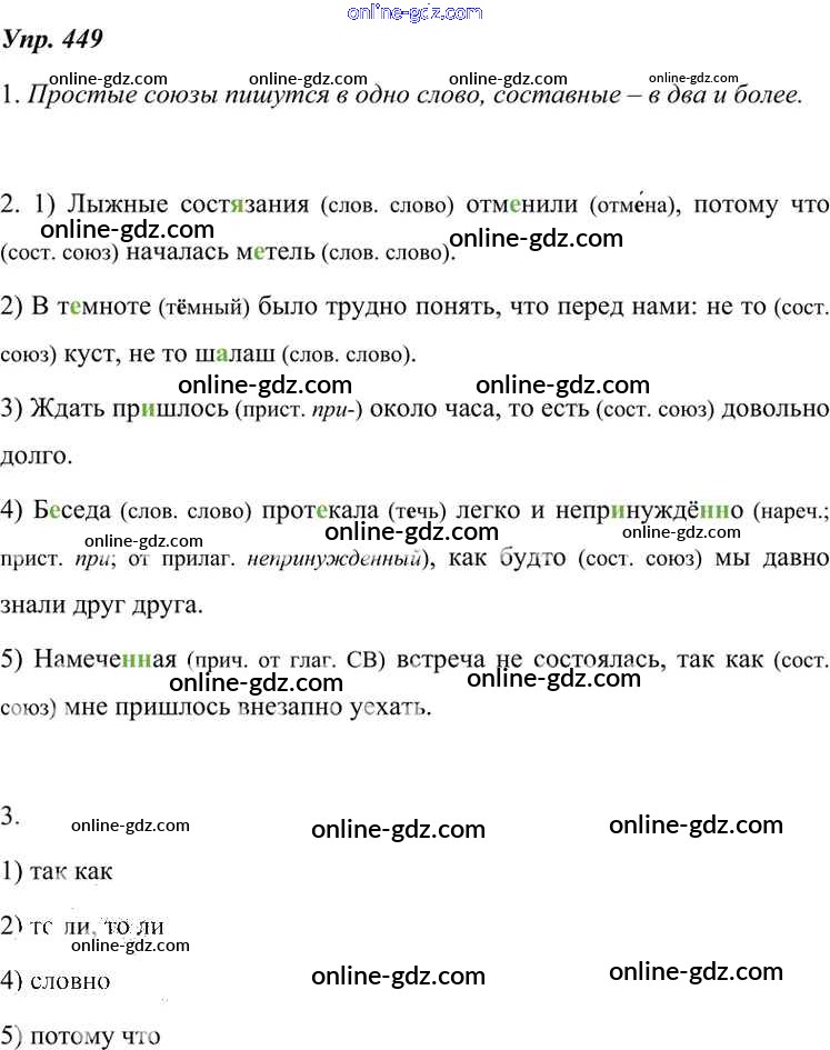 Готовые домашние задания по Русскому языку за 7 класс Учебник Разумовская, Львова УМК 2014 - Упражнения 449