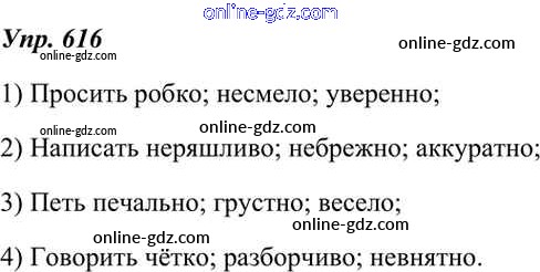Готовые домашние задания по Русскому языку за 7 класс Учебник Разумовская, Львова УМК 2014 - Упражнения 616