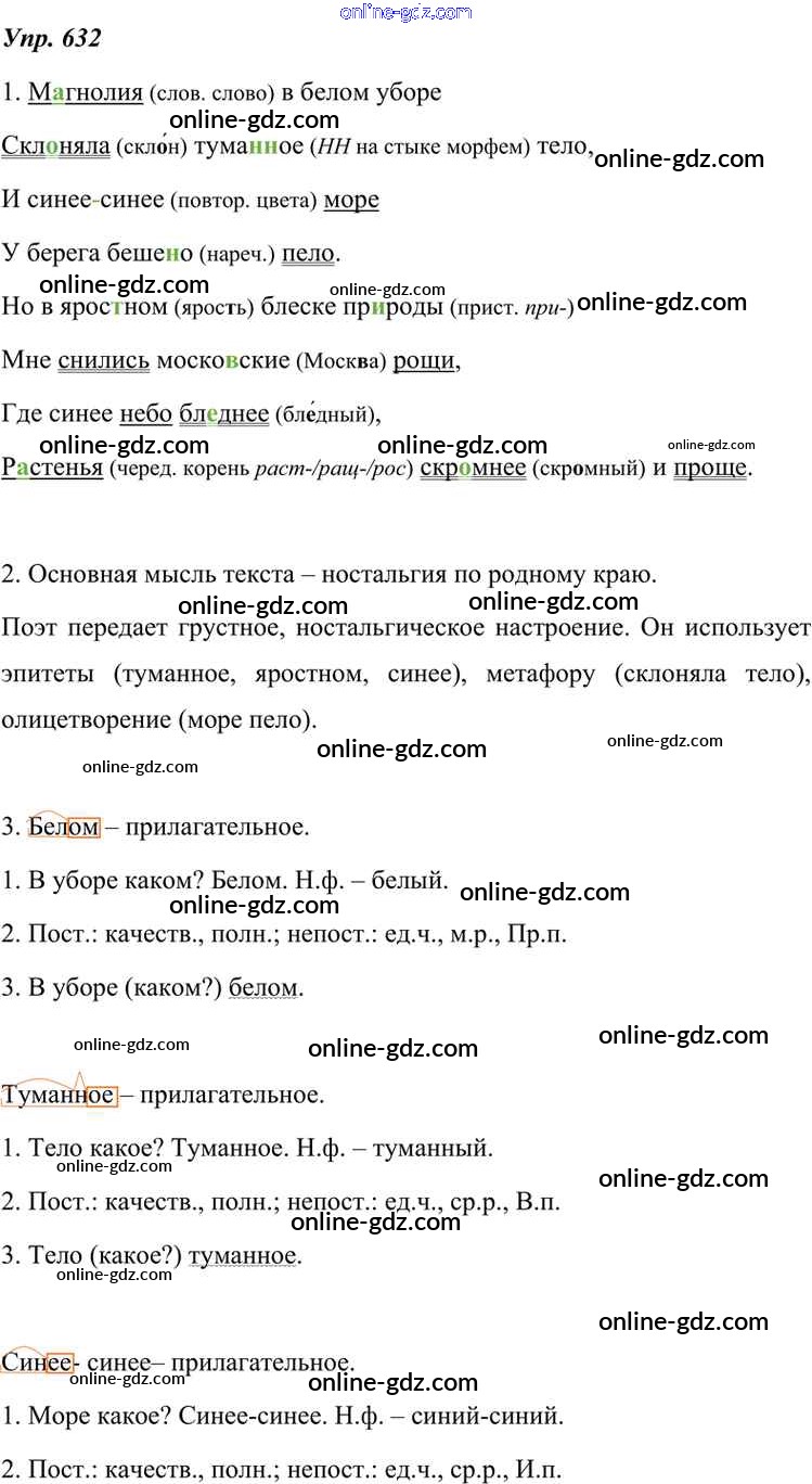 Готовые домашние задания по Русскому языку за 7 класс Учебник Разумовская, Львова УМК 2014 - Упражнения 632