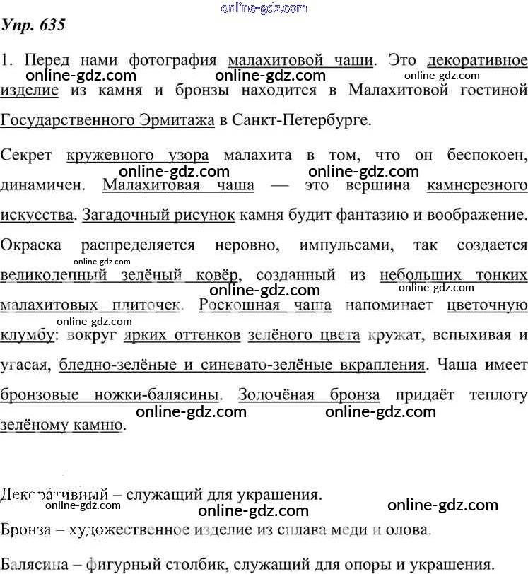 Готовые домашние задания по Русскому языку за 7 класс Учебник Разумовская, Львова УМК 2014 - Упражнения 635