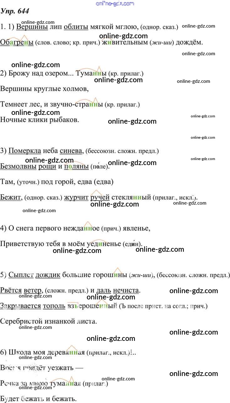 Готовые домашние задания по Русскому языку за 7 класс Учебник Разумовская, Львова УМК 2014 - Упражнения 644