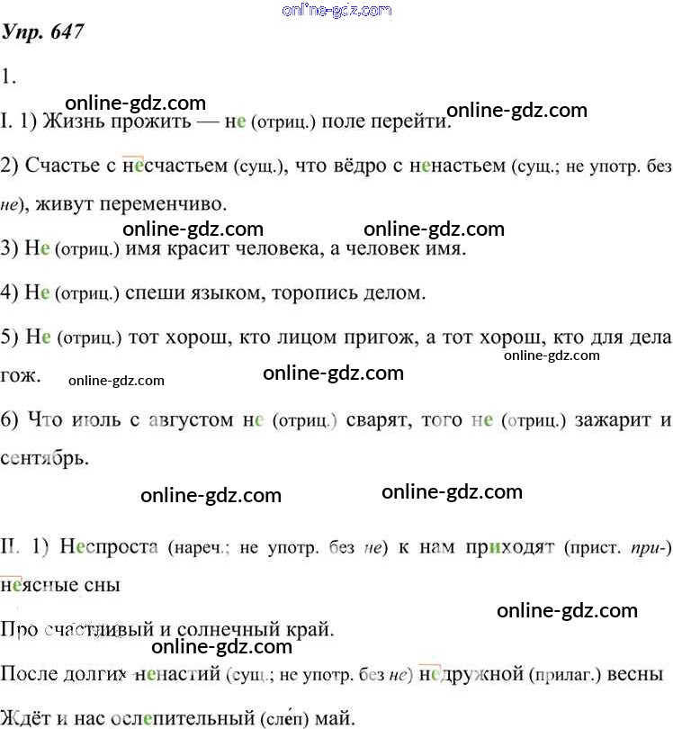 Готовые домашние задания по Русскому языку за 7 класс Учебник Разумовская, Львова УМК 2014 - Упражнения 647