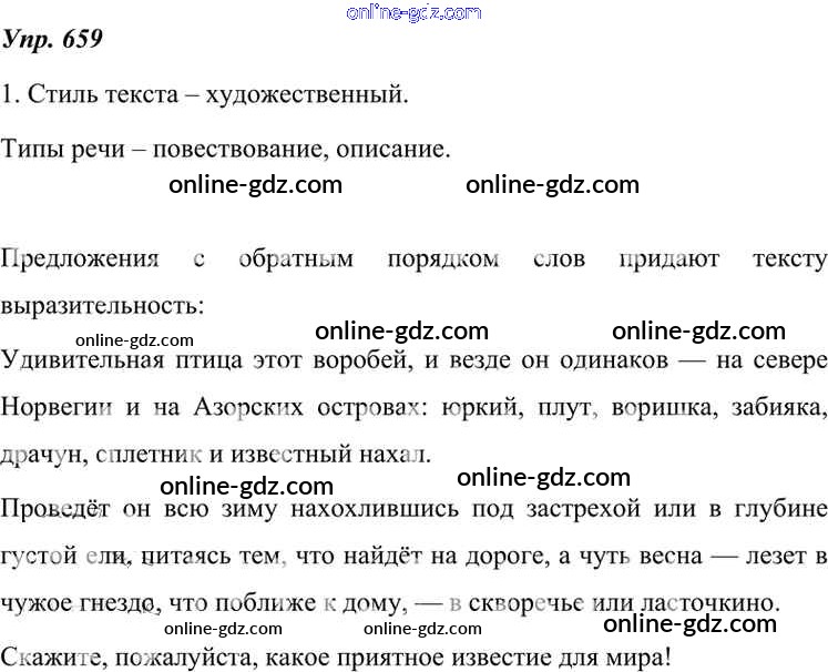 Готовые домашние задания по Русскому языку за 7 класс Учебник Разумовская, Львова УМК 2014 - Упражнения 659