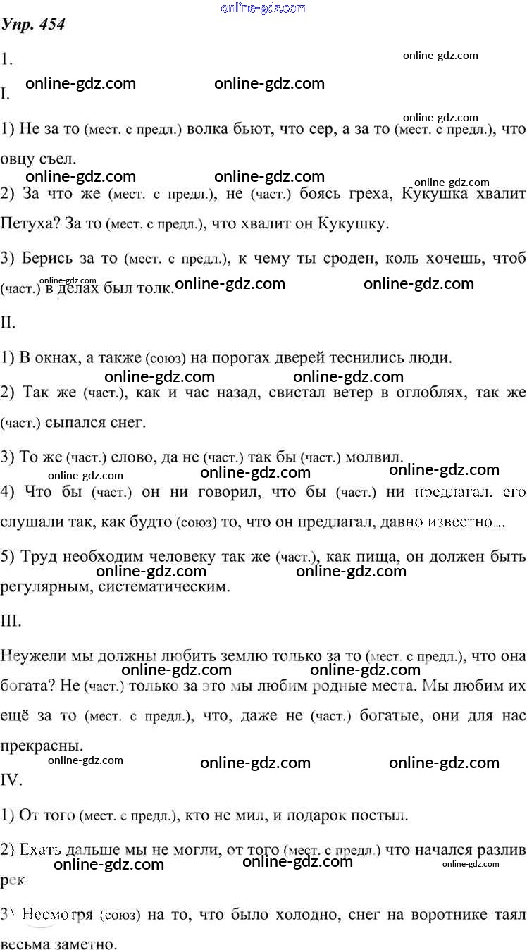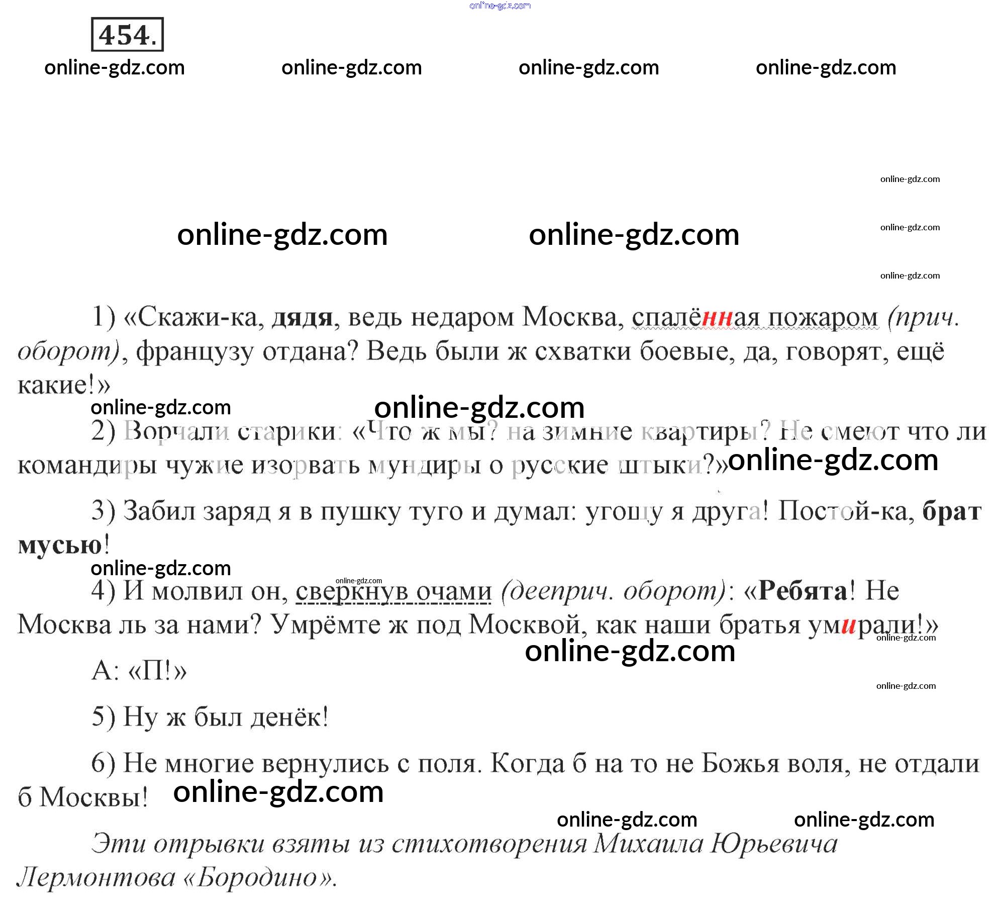 Готовые домашние задания по Русскому языку за 7 класс Учебник Разумовская, Львова УМК 2014 - Упражнения 454