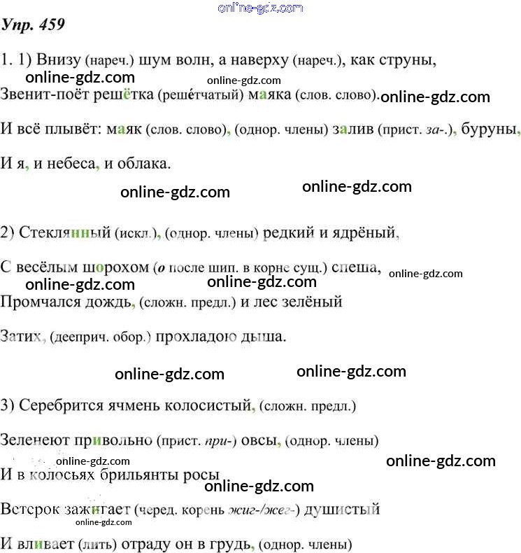 Готовые домашние задания по Русскому языку за 7 класс Учебник Разумовская, Львова УМК 2014 - Упражнения 459