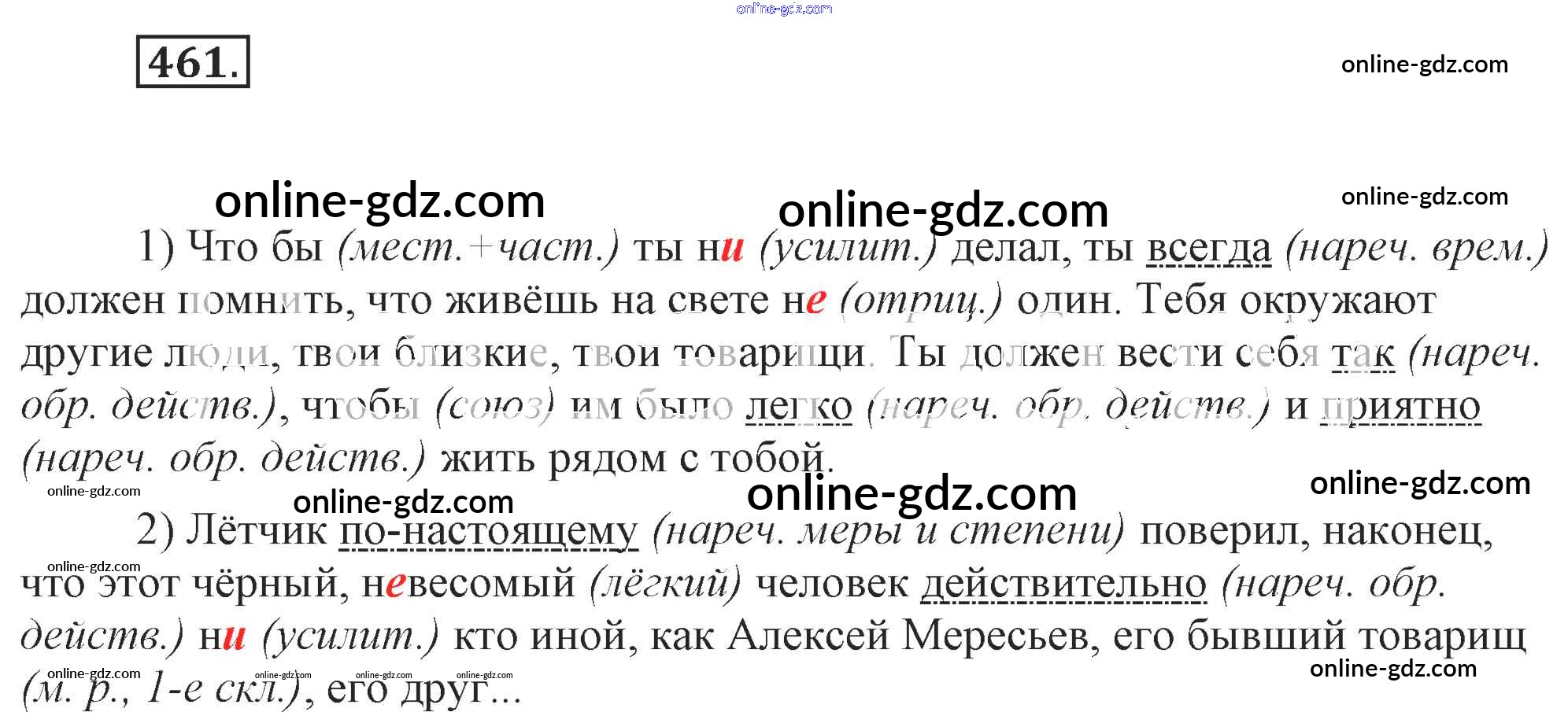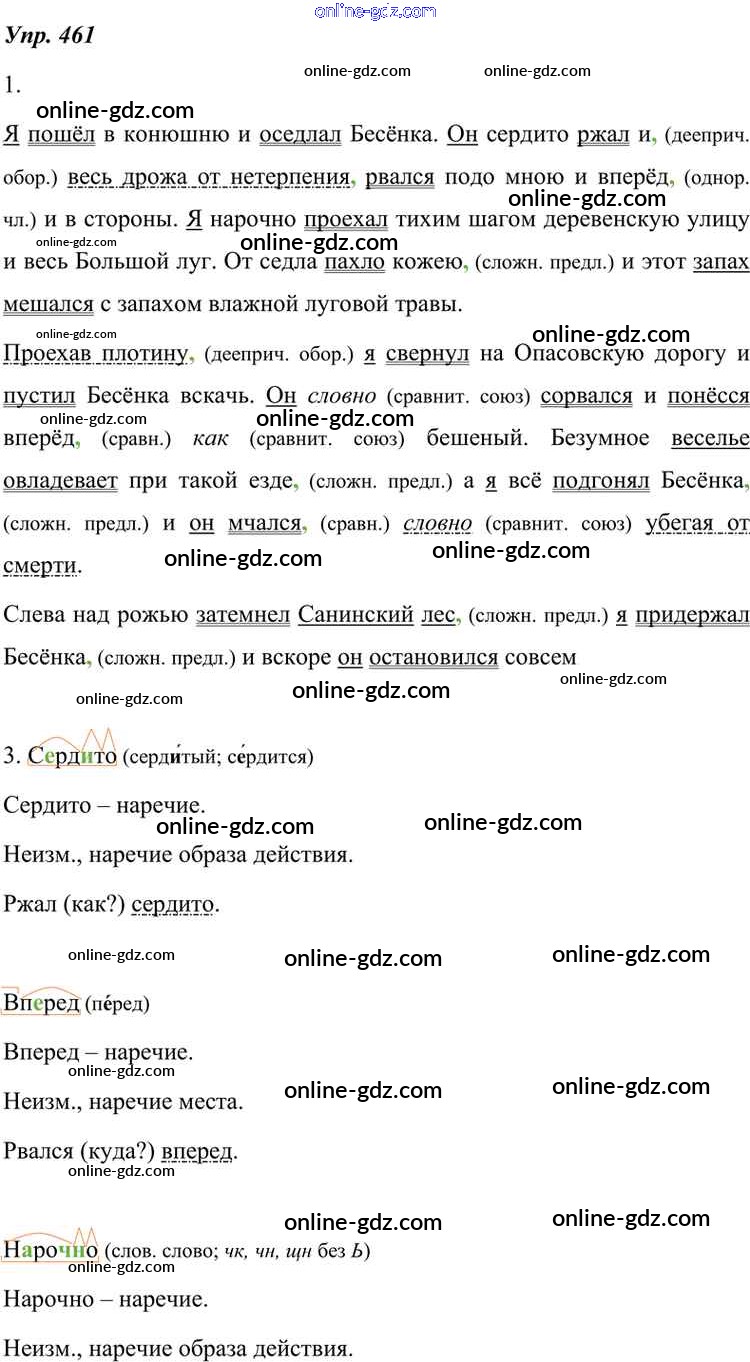 Готовые домашние задания по Русскому языку за 7 класс Учебник Разумовская, Львова УМК 2014 - Упражнения 461