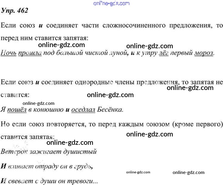 Готовые домашние задания по Русскому языку за 7 класс Учебник Разумовская, Львова УМК 2014 - Упражнения 462