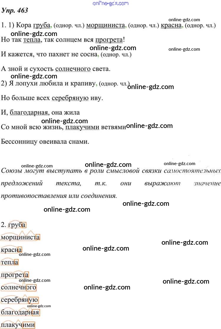 Готовые домашние задания по Русскому языку за 7 класс Учебник Разумовская, Львова УМК 2014 - Упражнения 463