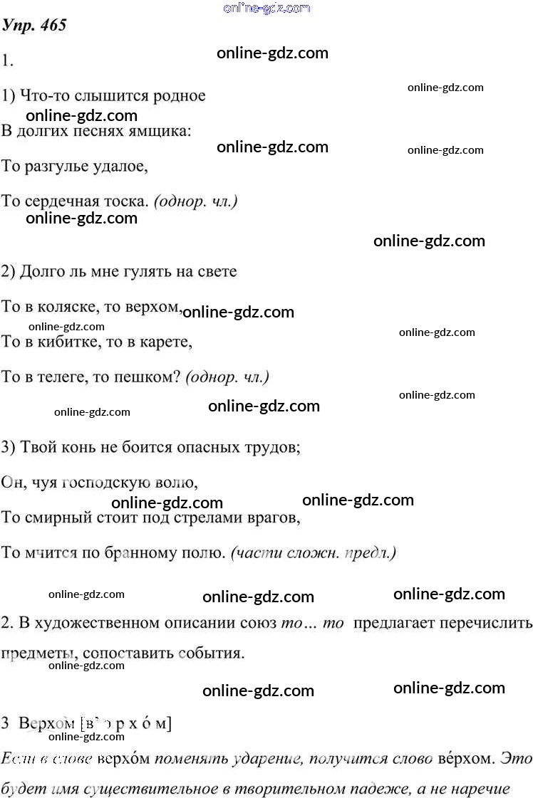 Готовые домашние задания по Русскому языку за 7 класс Учебник Разумовская, Львова УМК 2014 - Упражнения 465