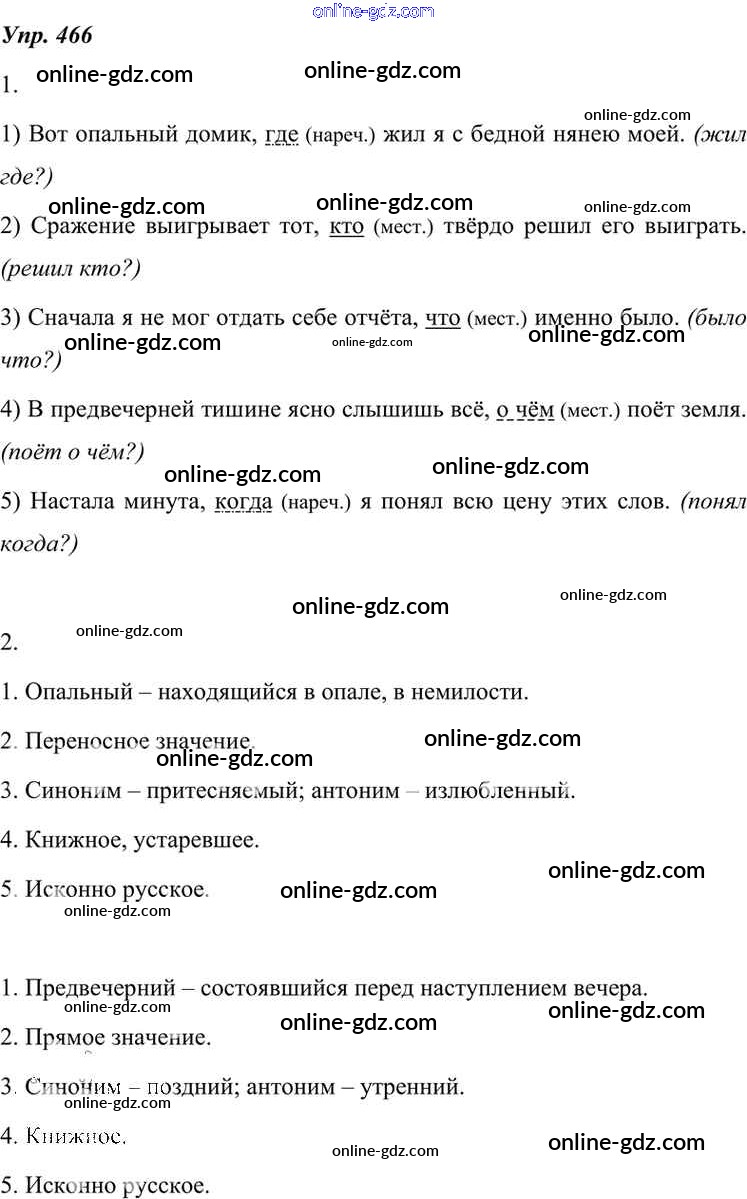 Готовые домашние задания по Русскому языку за 7 класс Учебник Разумовская, Львова УМК 2014 - Упражнения 466