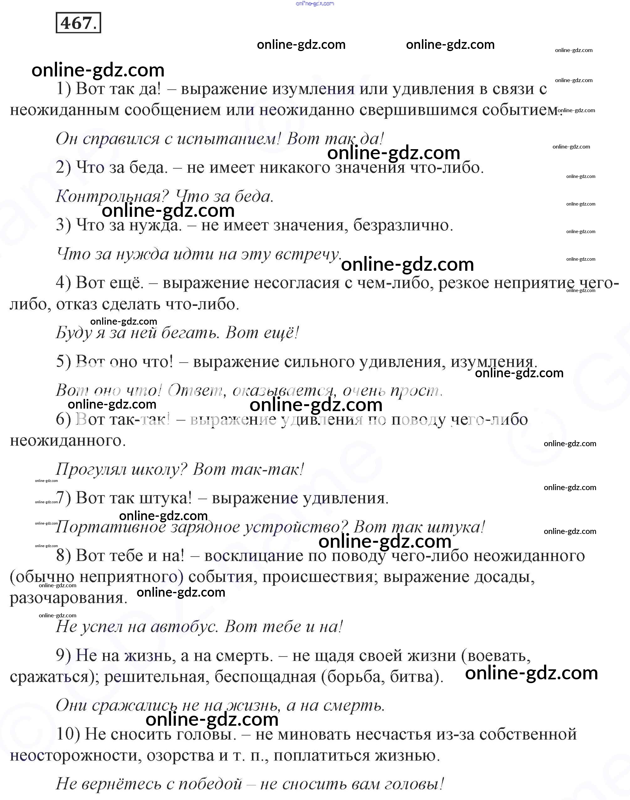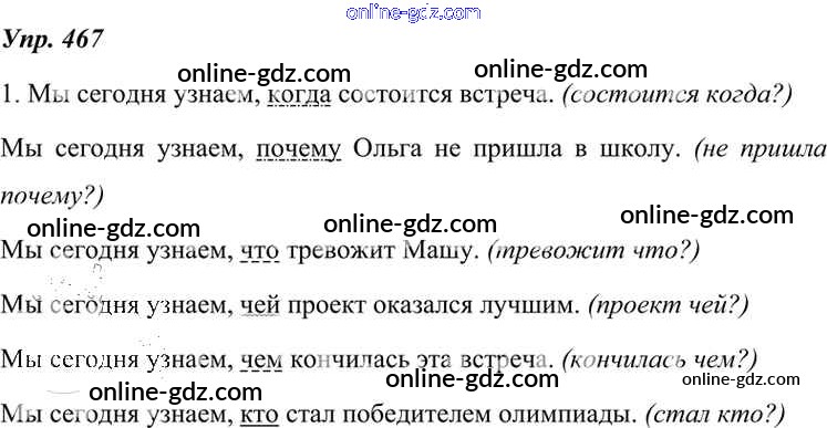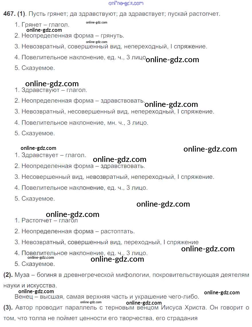 Готовые домашние задания по Русскому языку за 7 класс Учебник Разумовская, Львова УМК 2014 - Упражнения 467