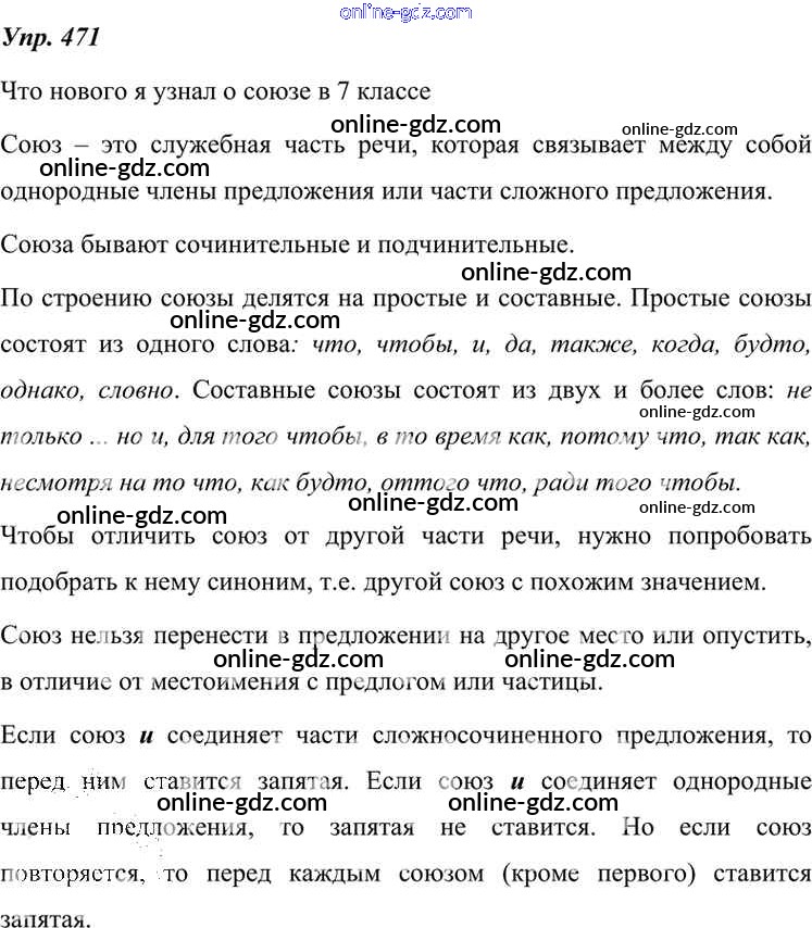 Готовые домашние задания по Русскому языку за 7 класс Учебник Разумовская, Львова УМК 2014 - Упражнения 471