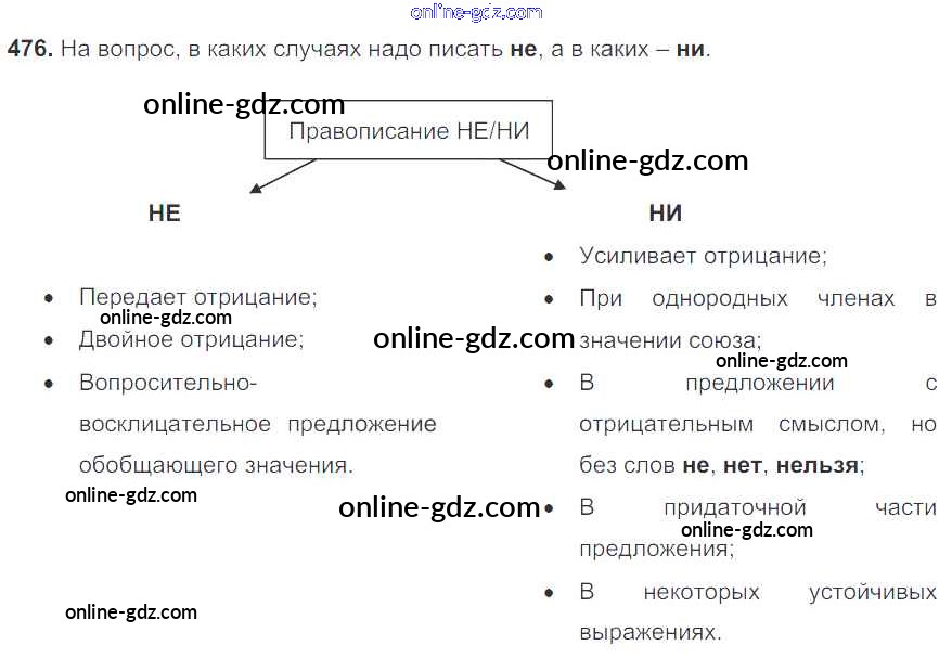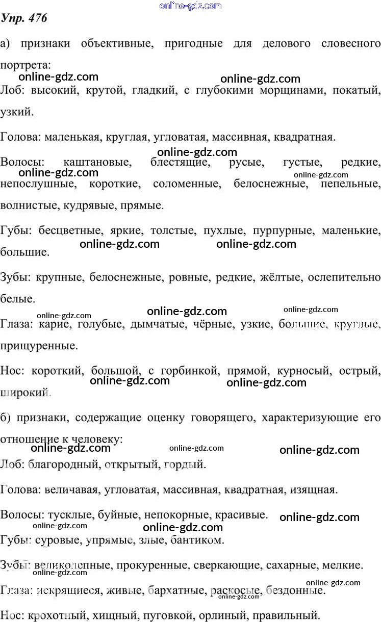 Готовые домашние задания по Русскому языку за 7 класс Учебник Разумовская, Львова УМК 2014 - Упражнения 476