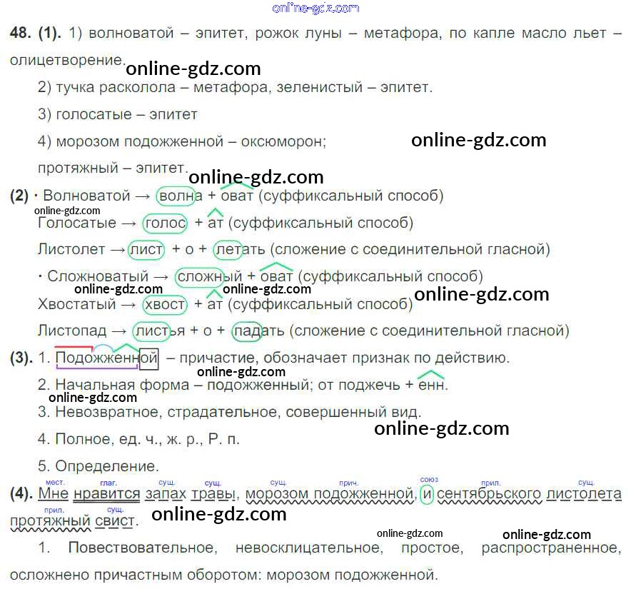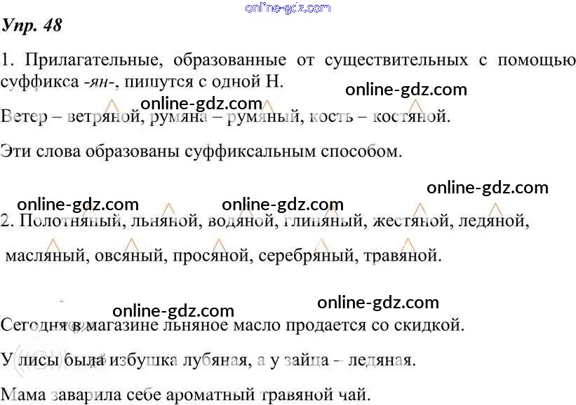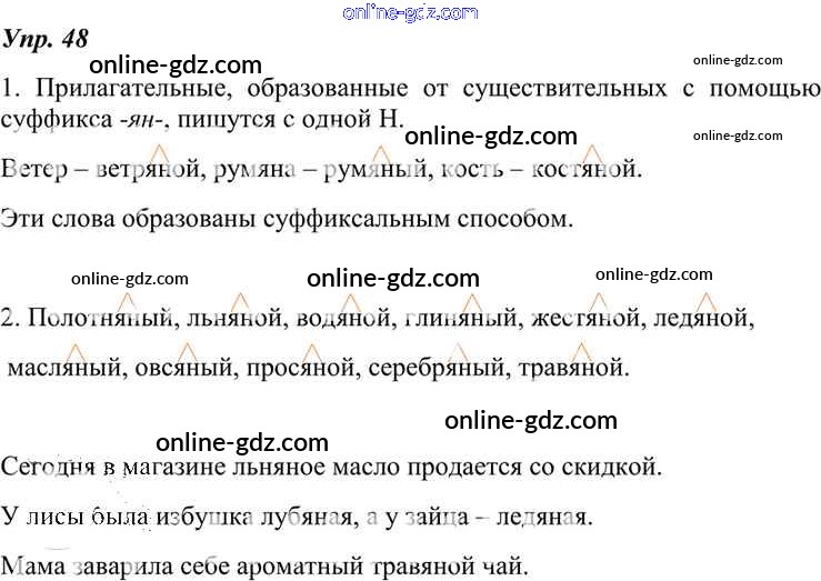 Готовые домашние задания по Русскому языку за 7 класс Учебник Разумовская, Львова УМК 2014 - Упражнения 48