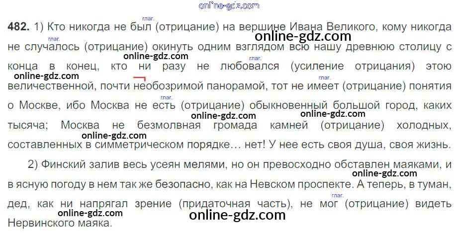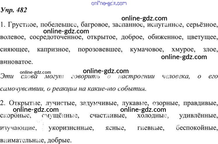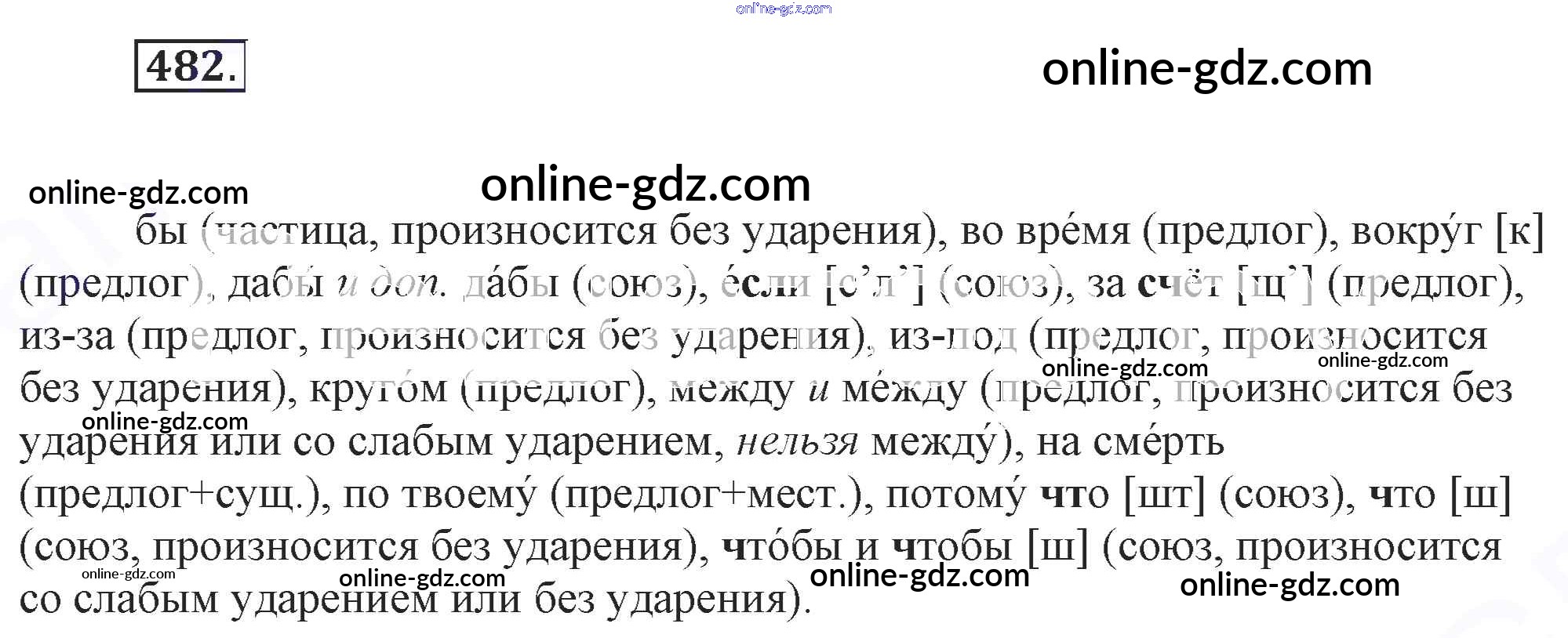 Готовые домашние задания по Русскому языку за 7 класс Учебник Разумовская, Львова УМК 2014 - Упражнения 482