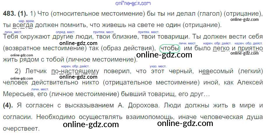 Готовые домашние задания по Русскому языку за 7 класс Учебник Разумовская, Львова УМК 2014 - Упражнения 483