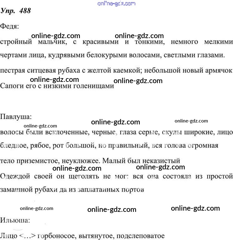 Готовые домашние задания по Русскому языку за 7 класс Учебник Разумовская, Львова УМК 2014 - Упражнения 488