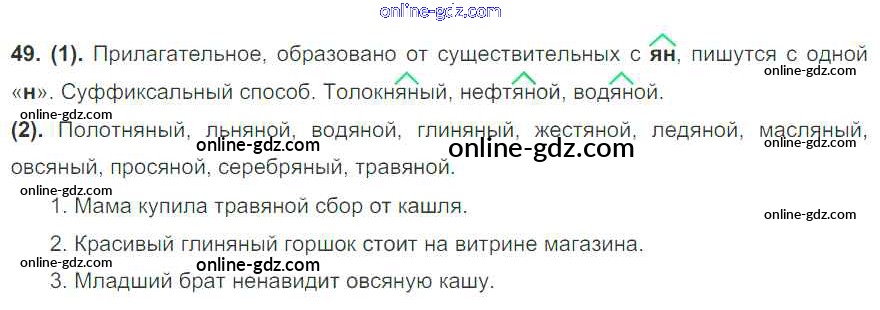 Готовые домашние задания по Русскому языку за 7 класс Учебник Разумовская, Львова УМК 2014 - Упражнения 49