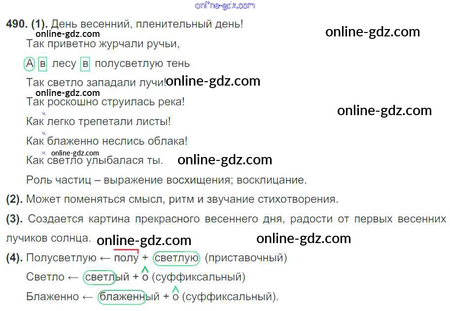 Готовые домашние задания по Русскому языку за 7 класс Учебник Разумовская, Львова УМК 2014 - Упражнения 490
