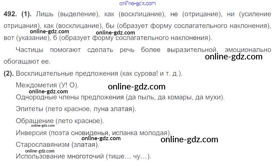Готовые домашние задания по Русскому языку за 7 класс Учебник Разумовская, Львова УМК 2014 - Упражнения 492