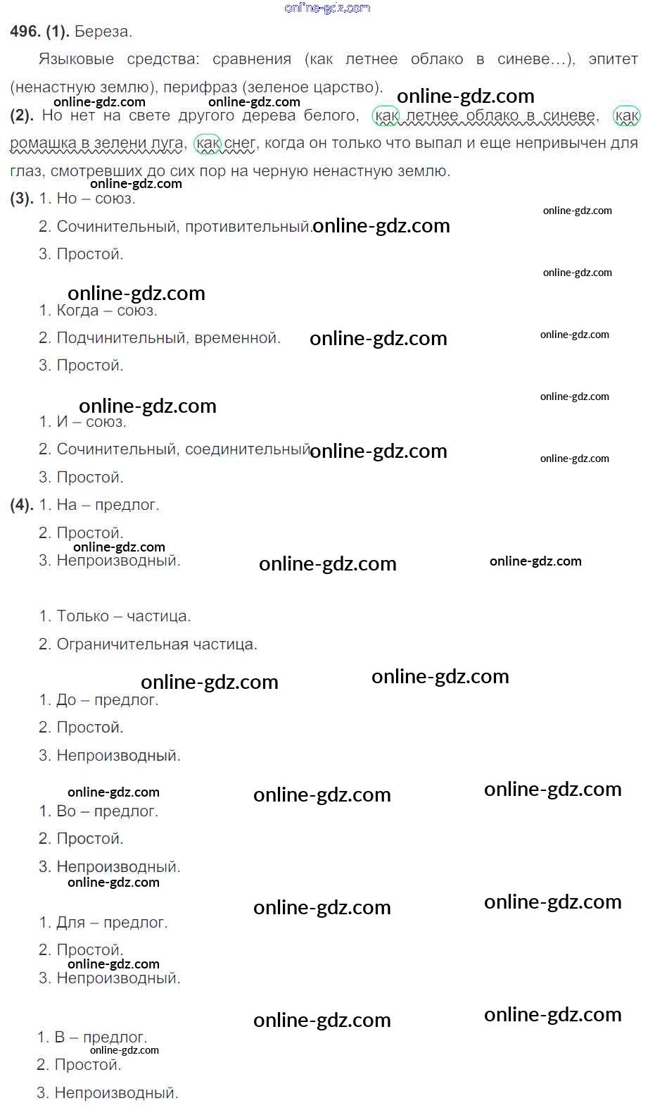 Готовые домашние задания по Русскому языку за 7 класс Учебник Разумовская, Львова УМК 2014 - Упражнения 496