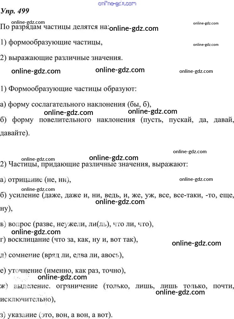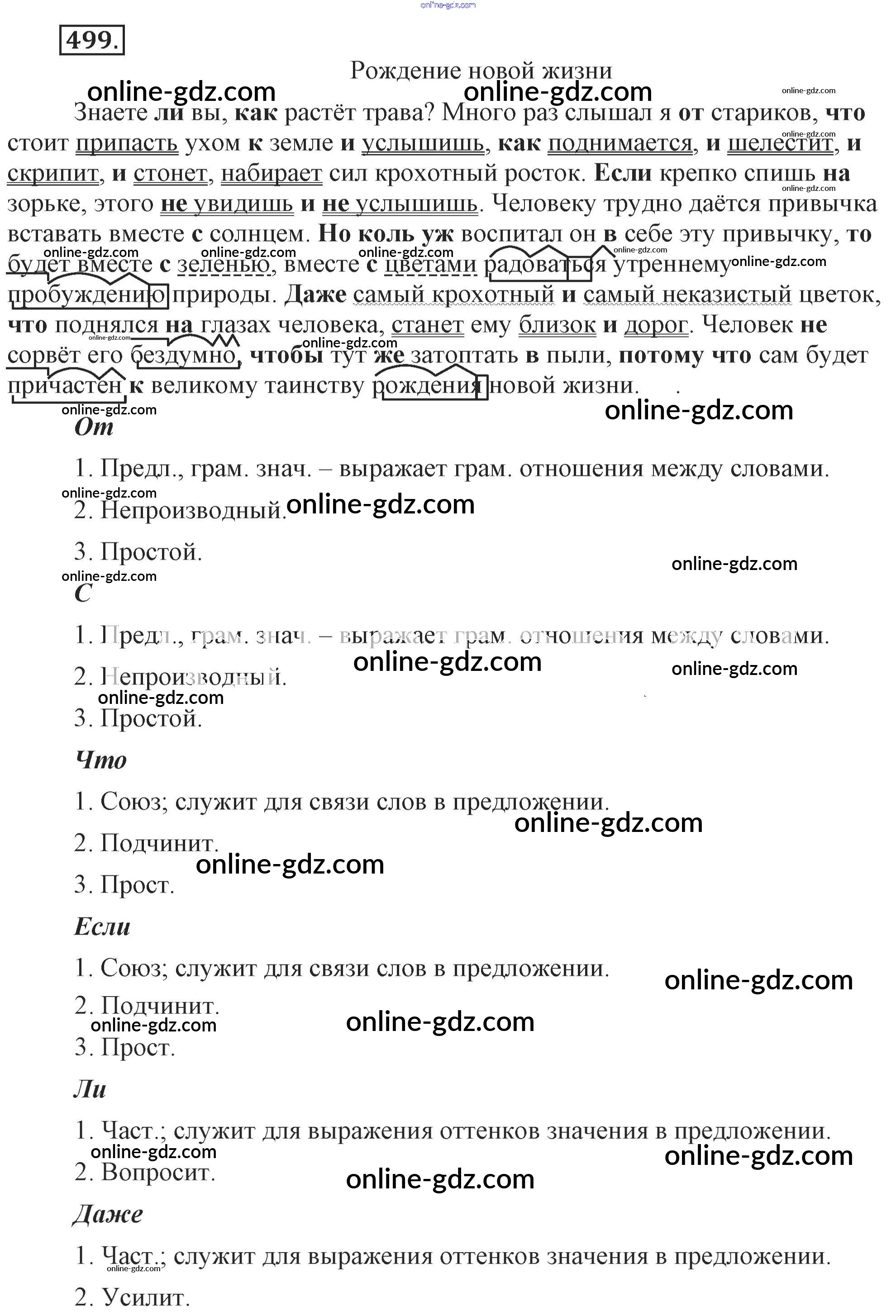 Готовые домашние задания по Русскому языку за 7 класс Учебник Разумовская, Львова УМК 2014 - Упражнения 499