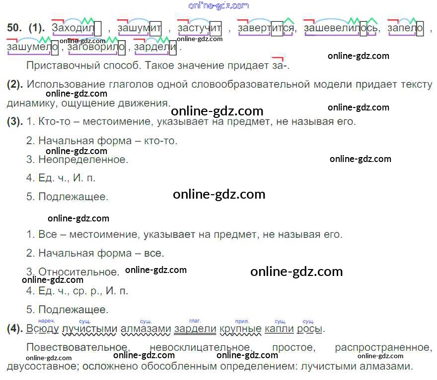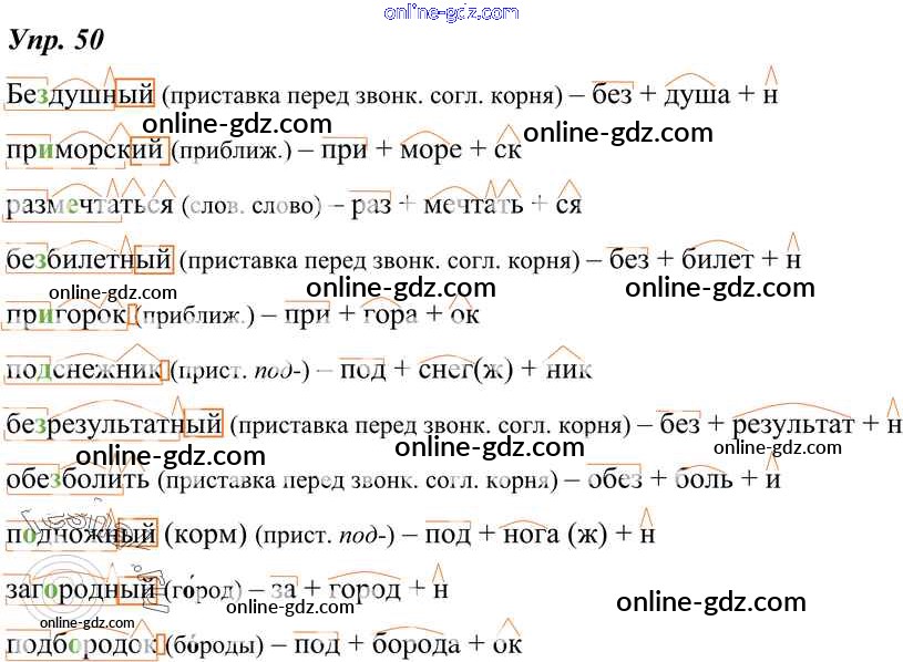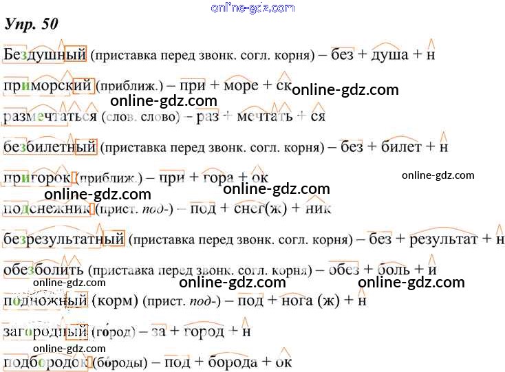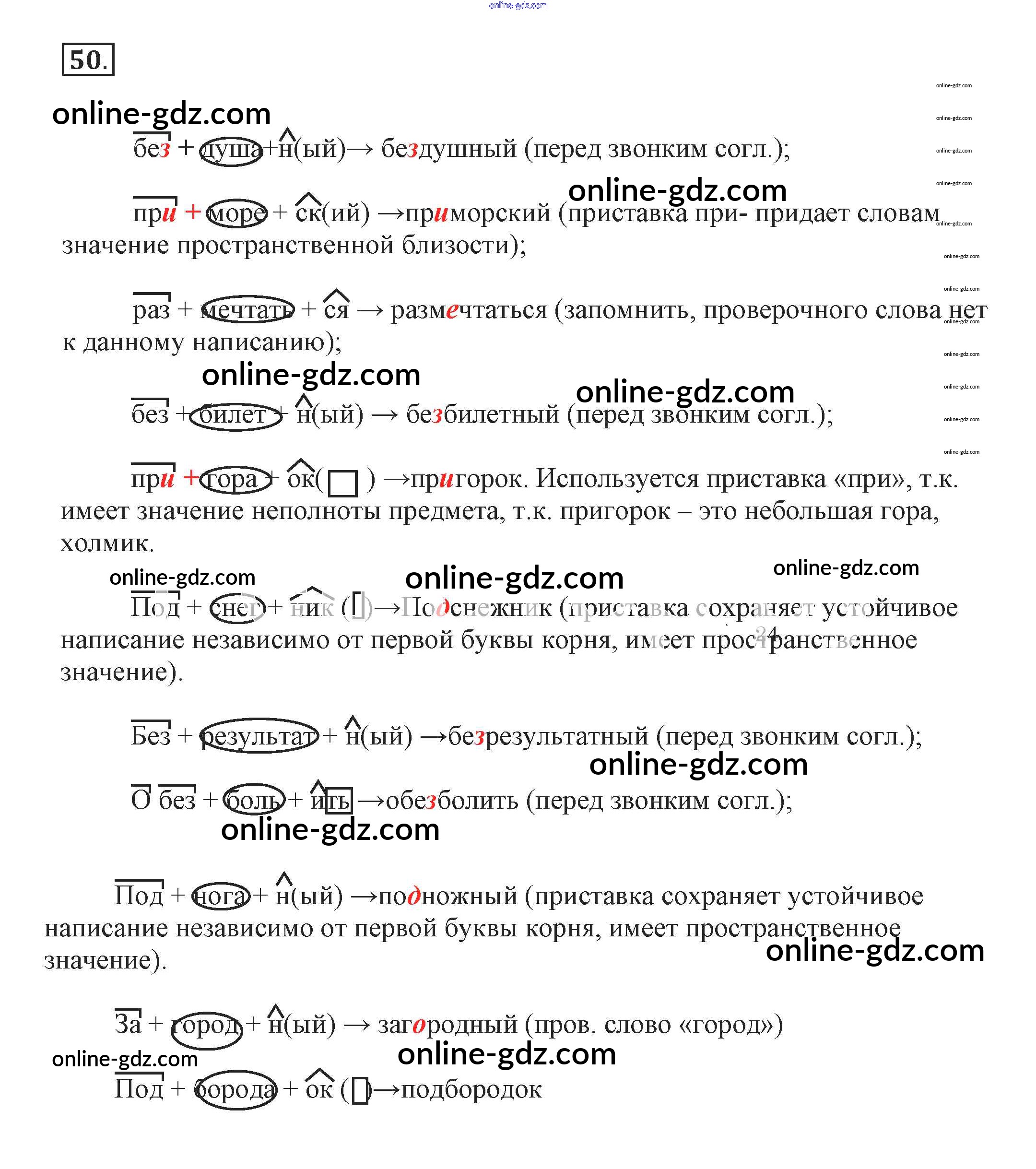 Готовые домашние задания по Русскому языку за 7 класс Учебник Разумовская, Львова УМК 2014 - Упражнения 50