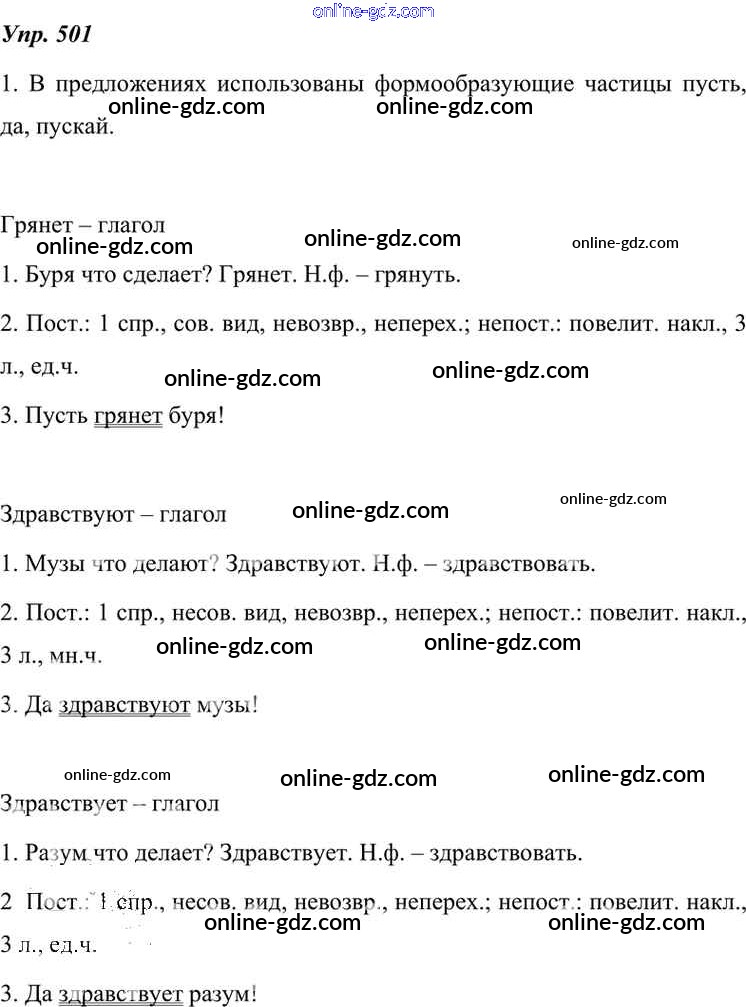 Готовые домашние задания по Русскому языку за 7 класс Учебник Разумовская, Львова УМК 2014 - Упражнения 501