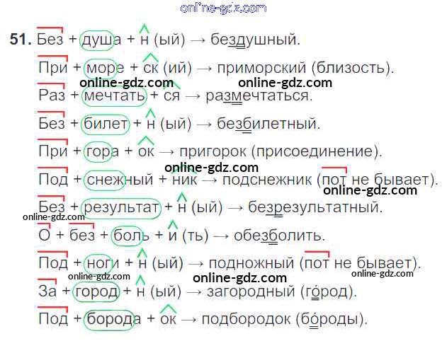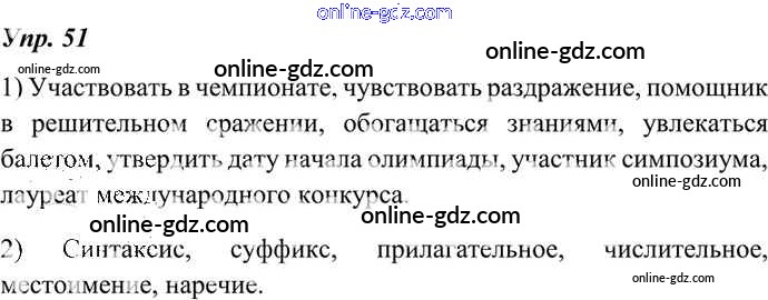 Готовые домашние задания по Русскому языку за 7 класс Учебник Разумовская, Львова УМК 2014 - Упражнения 51