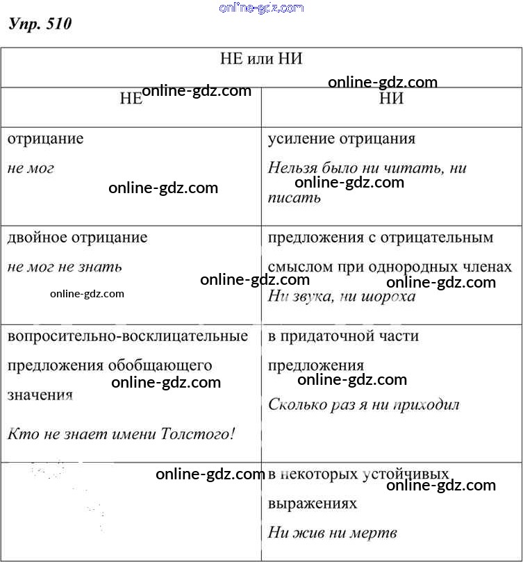Готовые домашние задания по Русскому языку за 7 класс Учебник Разумовская, Львова УМК 2014 - Упражнения 510