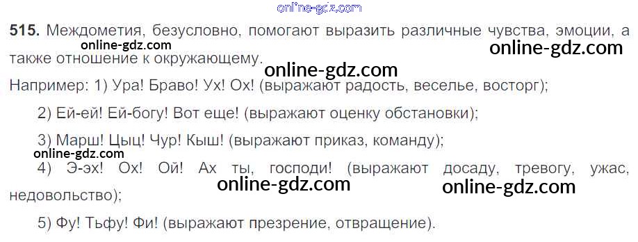 Готовые домашние задания по Русскому языку за 7 класс Учебник Разумовская, Львова УМК 2014 - Упражнения 515