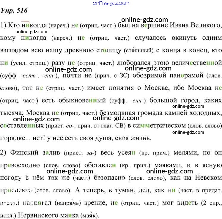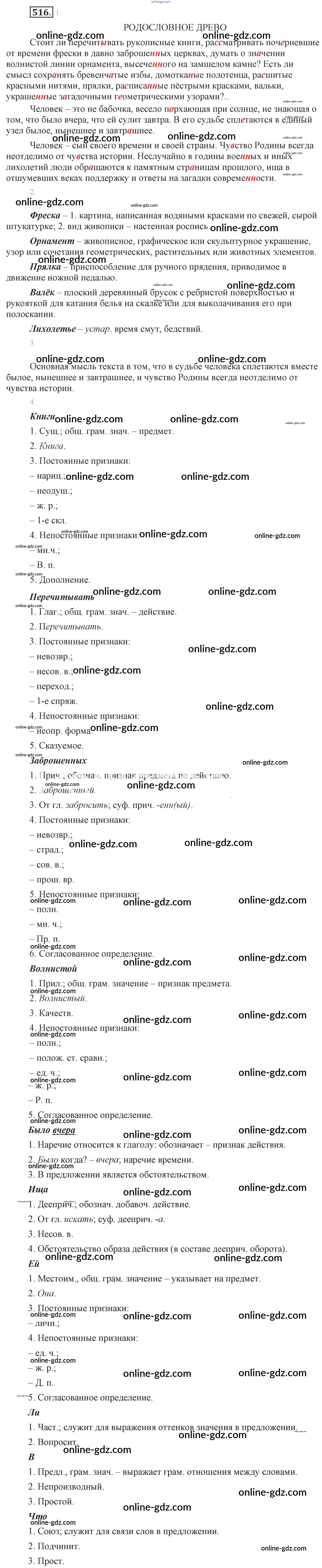 Готовые домашние задания по Русскому языку за 7 класс Учебник Разумовская, Львова УМК 2014 - Упражнения 516