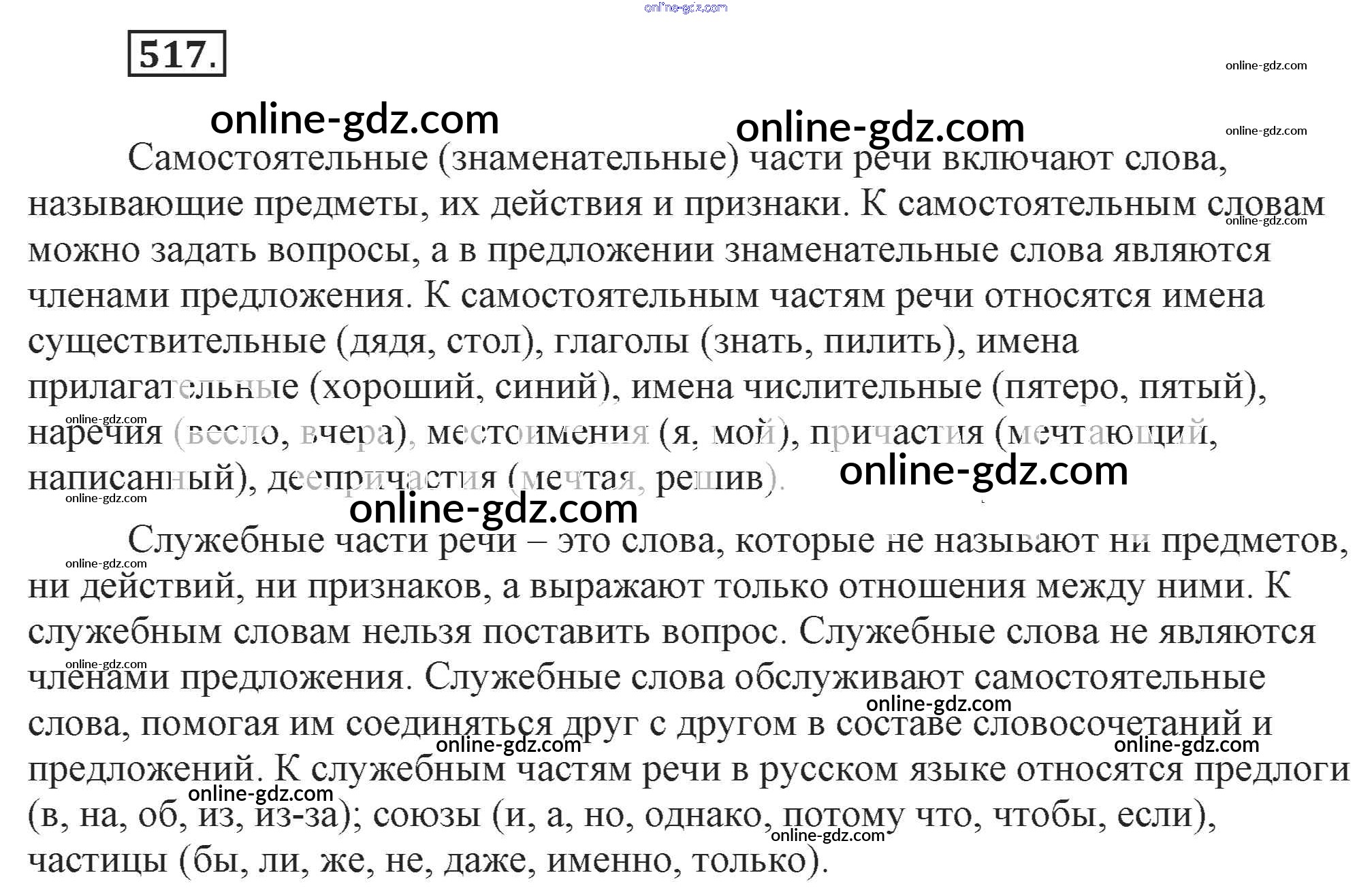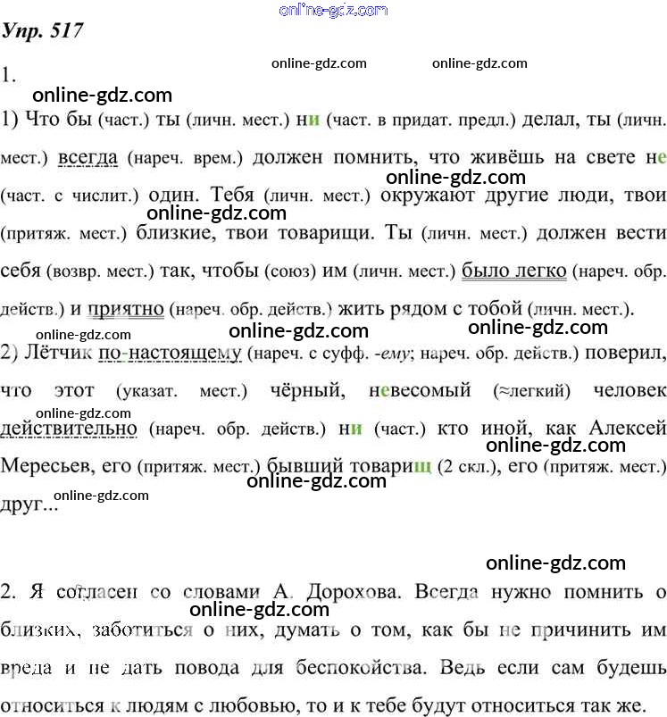 Готовые домашние задания по Русскому языку за 7 класс Учебник Разумовская, Львова УМК 2014 - Упражнения 517
