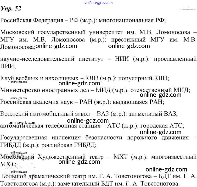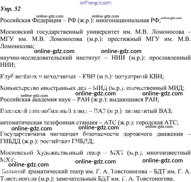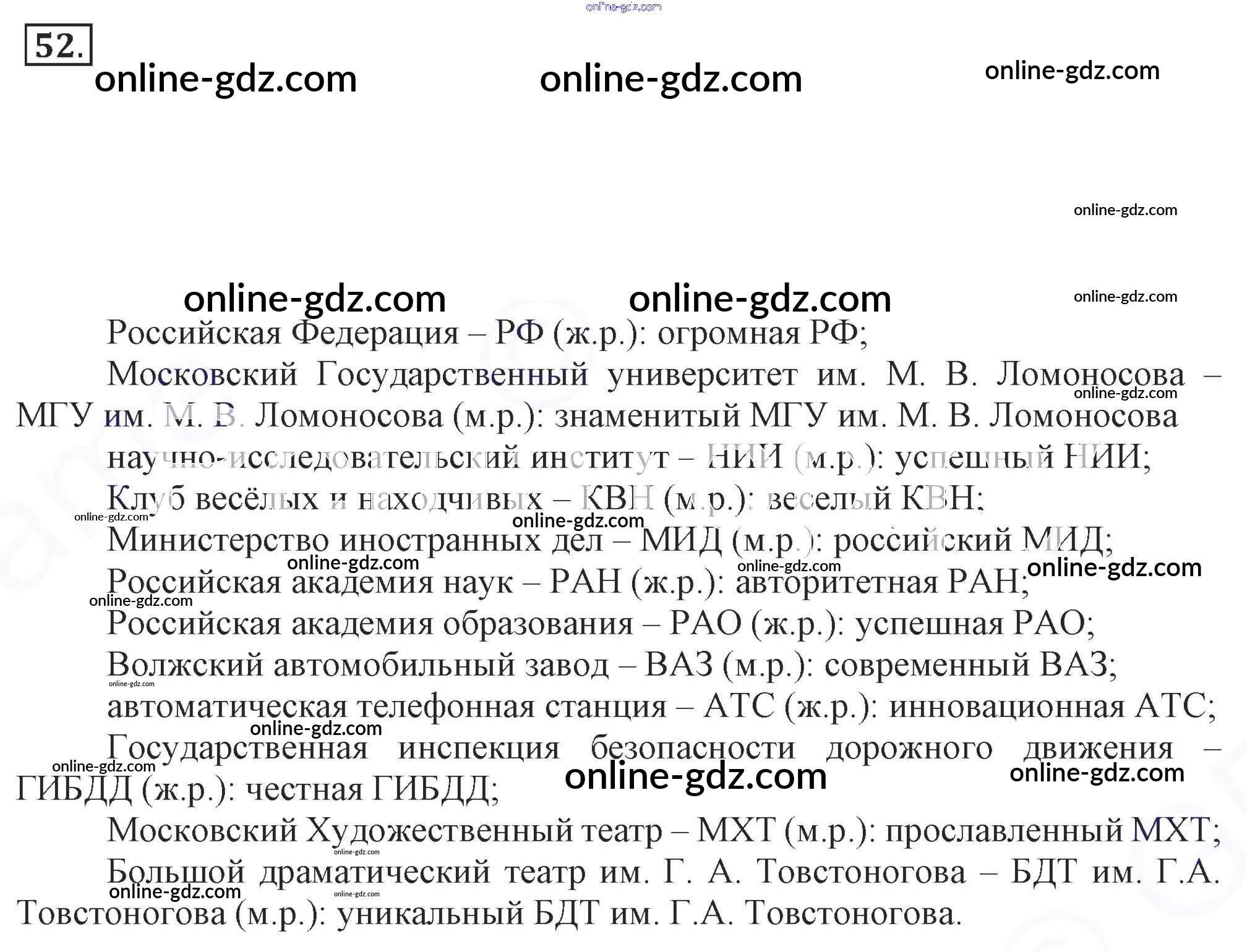 Готовые домашние задания по Русскому языку за 7 класс Учебник Разумовская, Львова УМК 2014 - Упражнения 52