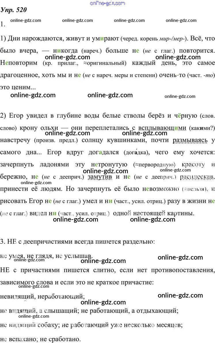 Готовые домашние задания по Русскому языку за 7 класс Учебник Разумовская, Львова УМК 2014 - Упражнения 520
