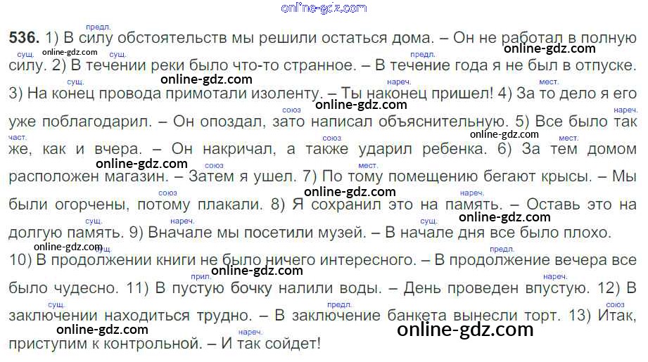 Готовые домашние задания по Русскому языку за 7 класс Учебник Разумовская, Львова УМК 2014 - Упражнения 536