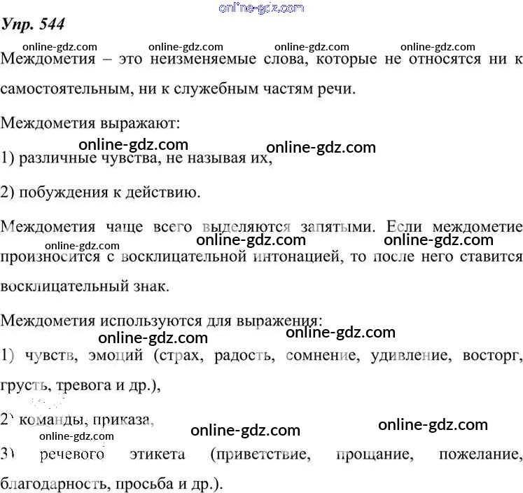 Готовые домашние задания по Русскому языку за 7 класс Учебник Разумовская, Львова УМК 2014 - Упражнения 544