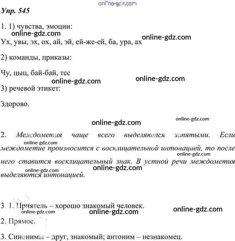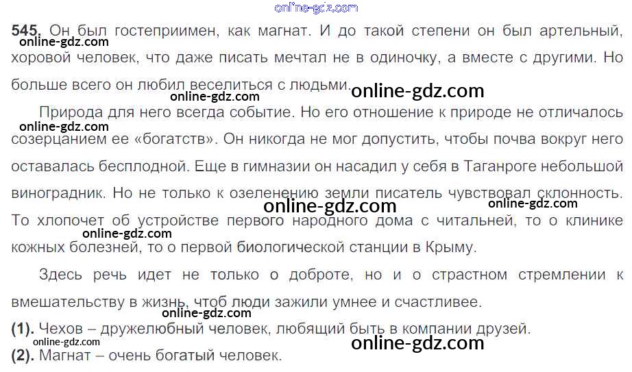 Готовые домашние задания по Русскому языку за 7 класс Учебник Разумовская, Львова УМК 2014 - Упражнения 545