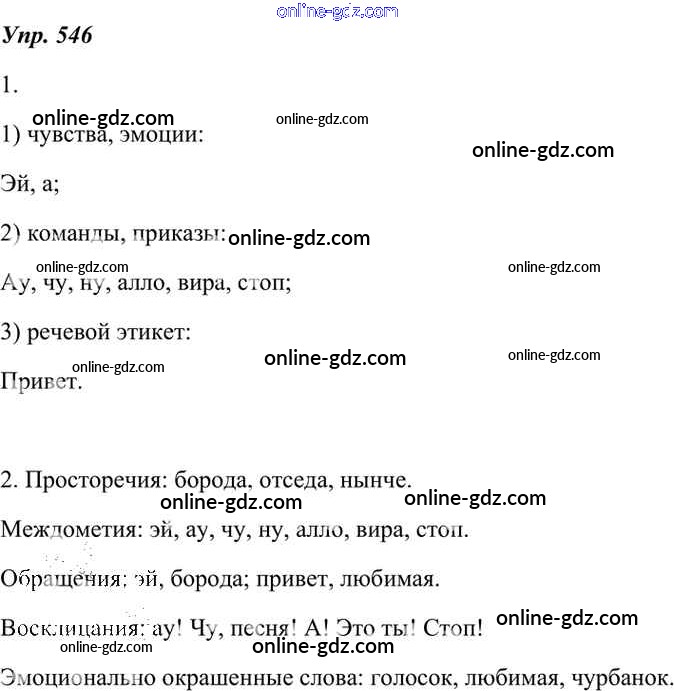 Готовые домашние задания по Русскому языку за 7 класс Учебник Разумовская, Львова УМК 2014 - Упражнения 546