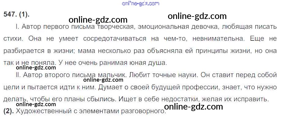 Готовые домашние задания по Русскому языку за 7 класс Учебник Разумовская, Львова УМК 2014 - Упражнения 547