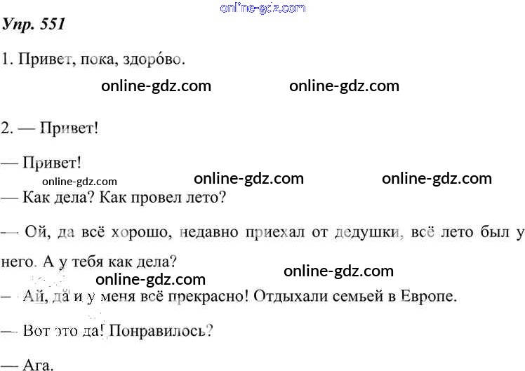 Готовые домашние задания по Русскому языку за 7 класс Учебник Разумовская, Львова УМК 2014 - Упражнения 551