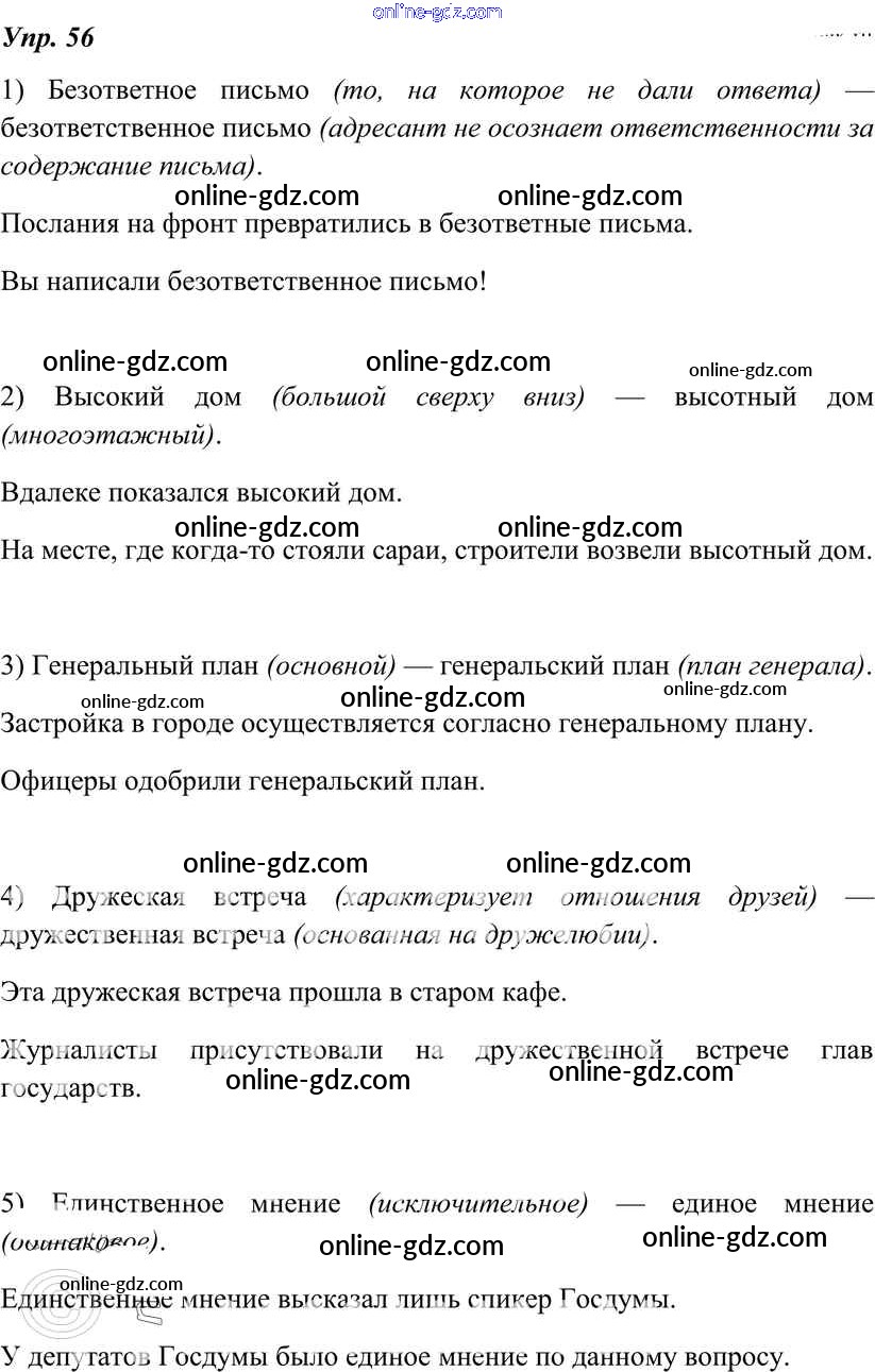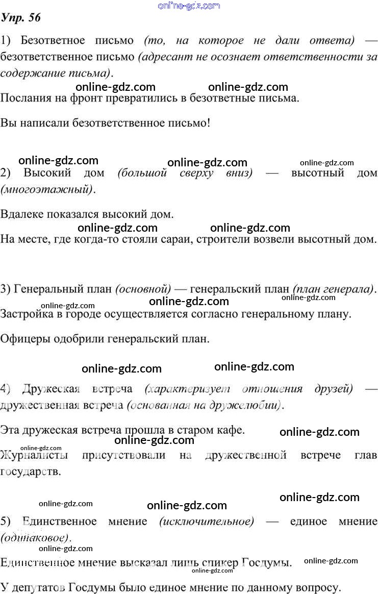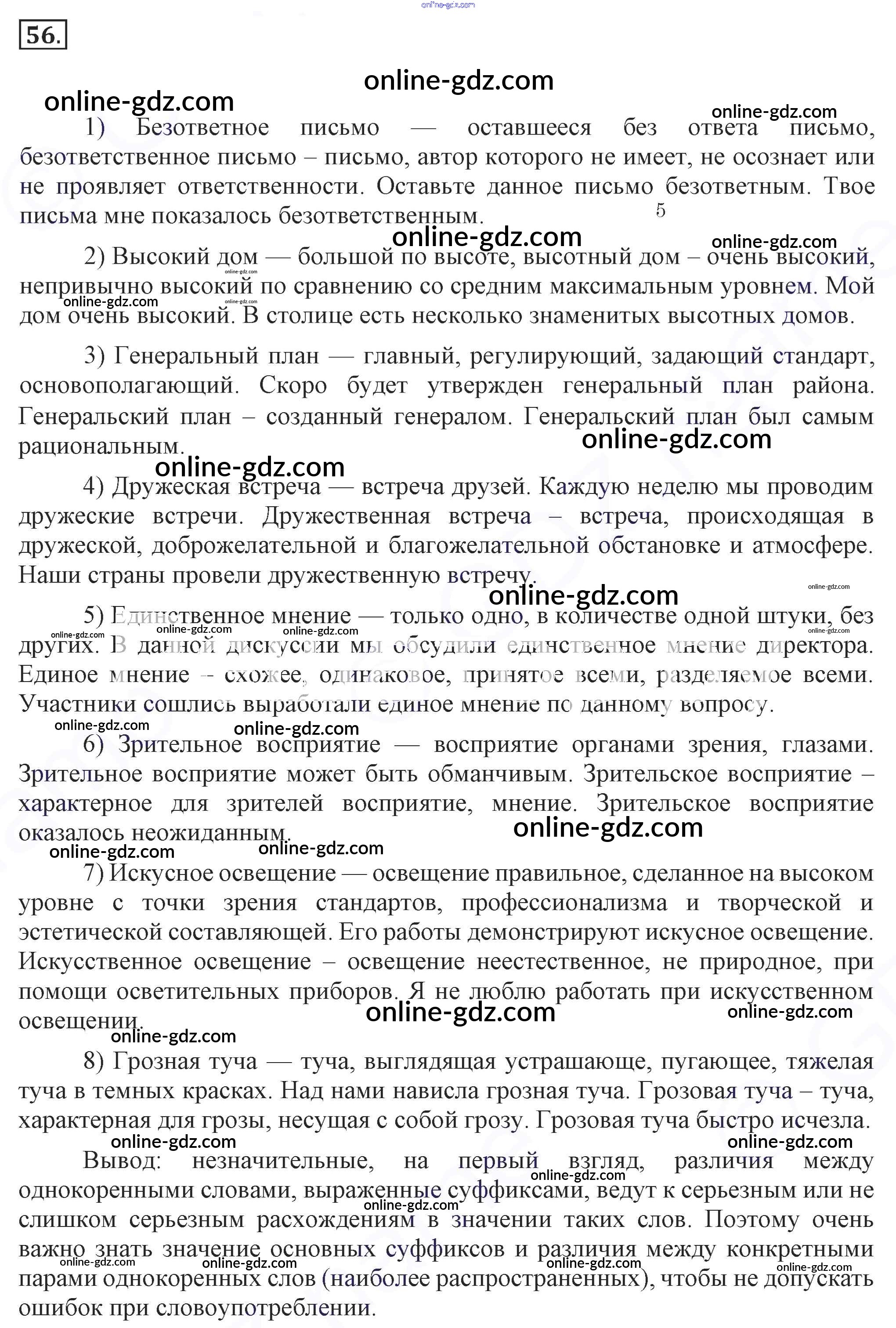 Готовые домашние задания по Русскому языку за 7 класс Учебник Разумовская, Львова УМК 2014 - Упражнения 56