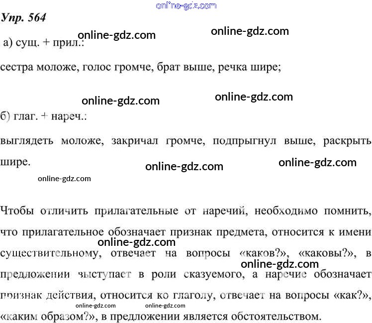 Готовые домашние задания по Русскому языку за 7 класс Учебник Разумовская, Львова УМК 2014 - Упражнения 564