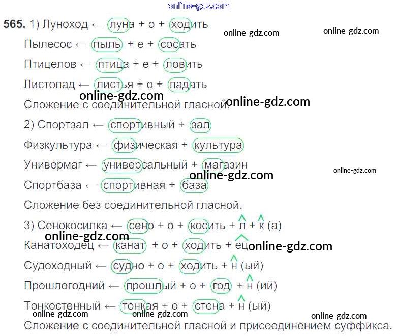 Готовые домашние задания по Русскому языку за 7 класс Учебник Разумовская, Львова УМК 2014 - Упражнения 565