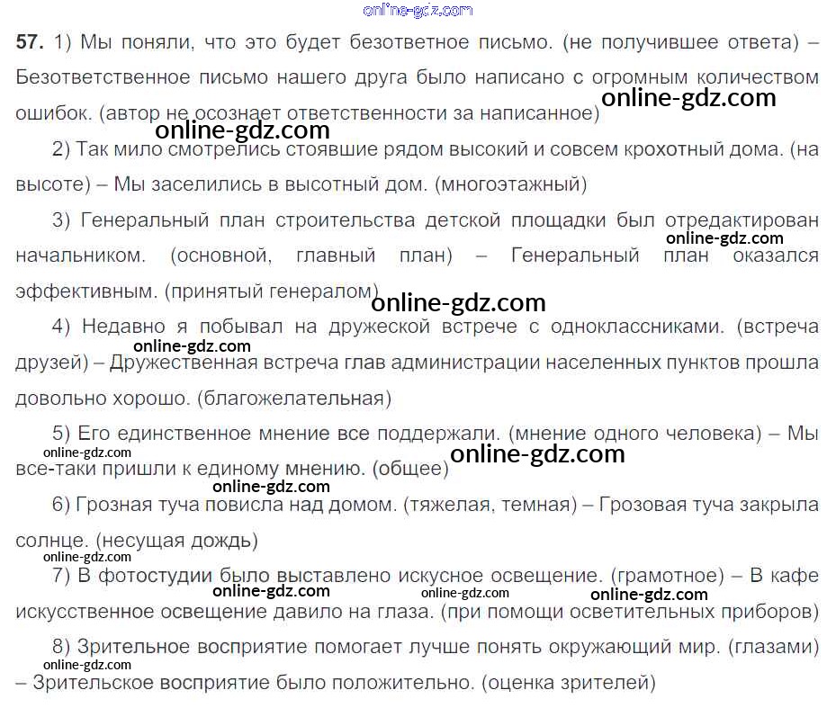 Готовые домашние задания по Русскому языку за 7 класс Учебник Разумовская, Львова УМК 2014 - Упражнения 57